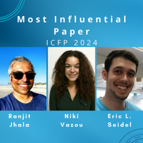 CSE/CNS Professor Ranjit Jhala and two alumni from the Jacobs School of Engineering’s Department of Computer Science and Engineering, Niki Vazou (PhD ’16) and Eric L. Seidel (M.S., PhD ’16, ’17), were among those recognized for the transformative paper, Refinement Types for Haskell. The paper was selected from 10 years of ICFP research for its influence over the past decade and for solving real-world problems in Functional Programming.